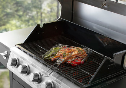 - Wire expands on one side to fit all thickness of food while the other side keeps items secure