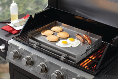 Convenient griddle gives BBQs and grills a flat cooking top for breakfasts and much more.