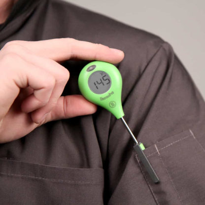 The first rotating display pocket thermometer, the ThermoPop is another innovation from ThermoWorks. A simple button press rotates the display in 90-degree increments. Hold the ThermoPop in either hand or read it when it’s upside down. Any angle is convenient!