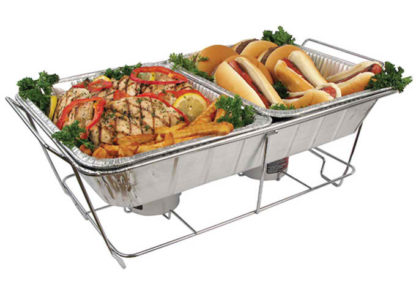 Winco Wire Chafer Stand holds 2-inch-high full-size stainless steel pans and aluminum foil trays.