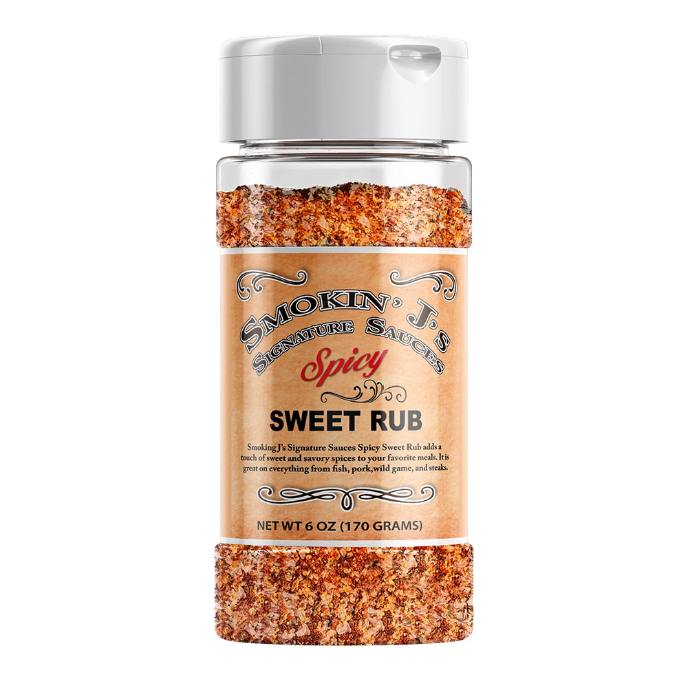 Smokin’ J’s Signature Sauces Spicy Sweet Rub adds a touch of sweet and savory spices to your favorite meals. It is great on everything from fish, pork, wild game, and steaks.