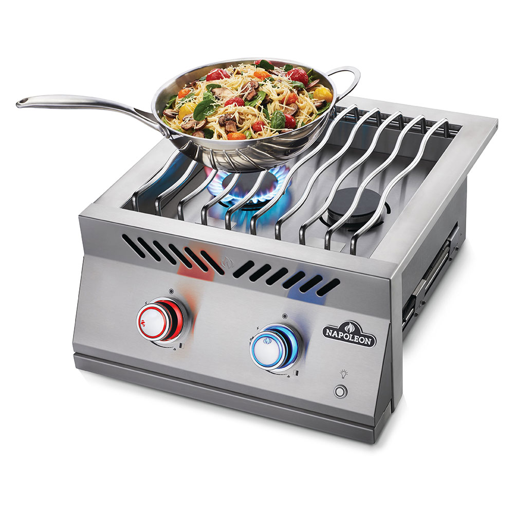 Create sides and sauces while the main grill is in use with this 18-inch, drop-in, Dual Range Burner that provides loads of extra space. Instantly ignite these burners single-handed with the JETFIREâ„¢ Ignition System. The large, ergonomic control knobs provide ambiance and safety, glowing a glorious blue that changes to red when the burners are in use. Made from the same quality of marine-grade stainless steel as the 700 Series built-in grills, this drop-in side burner matches your custom outdoor kitchen. These burners provide stylish longevity and were built for ease of installation. The power supply kit N370-1091-SER is required for all Built-in 700 Series burners being used in an application without a Built-in 700 Series Built-in Grill in order to supply power for the control knobs.
