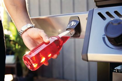 The Freestyle 425 Propane Gas Barbecue is a compact grill with premium features and unbeatable value. Ignited by the instant JETFIRE ignition system that lights the main burners with a jet of flame easily, every time. Get the perfect sear over the cast iron porcelainized enamel cooking grids. Four stainless steel burners provide heat that can be easily controlled by ergonomic knobs and monitored by the onboard temperature gauge. The rugged wheels allow this barbecue to go where the action is, while the easy-to-fold side shelves, featuring tool hangers and a bottle opener, make sure that the Freestyle meets your lifestyle and space.