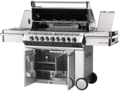 With features you won’t see on the most grills, the Napoleon Prestige PRO™ 665 Propane Gas Grill with Infrared Rear and Side Burners has everything needed for professional-grade backyard grilling. Superior heat retention provides oven-like performance and first-rate searing; you’ll know it’s a Napoleon with those iconic WAVE™ cooking grids for those distinctive sear marks and proximity lighting. Use the integrated smoker tray and dedicated burner to add smoke to all of your favorite grilled dishes. On the outside, a shining stainless steel body provides durability against the elements while chrome details add luxury. Not just durable on the outside; under the lid is the same quality stainless steel used for the cooking grids, tube burners, and dual-level sear plates. The LED Spectrum NIGHT LIGHT™ Control Knobs have near limitless color options making night-time entertaining a breeze, and they also glow red when the gas is left on as a safety feature.