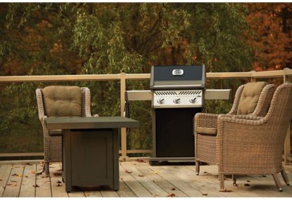 Napoleon’s Rogue® 425 Propane Gas Grill in black, is a premium quality gas grill with an affordable price. Three burners light every time with a battery-free ignition. This grill boasts precise temperature control, high heat searing over cast iron cooking grids and stainless steel sear plates for even heating and to keep your grill clean. The stylish black exterior is highly durable and easy to clean.