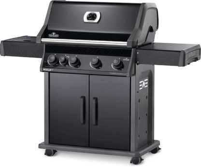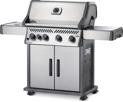 The Napoleon Rogue® 525 Propane Gas Grill with Infrared Side Burner in Black is a large and durable, easy to maintain gas grill. Featuring four main burners, stainless steel sear plates, cast grids and a high top lid, this grill has everything you need for gourmet meals. Sear restaurant-style steaks on the integrated sizzle zone side burner while generous side shelves provide plenty of prep space.